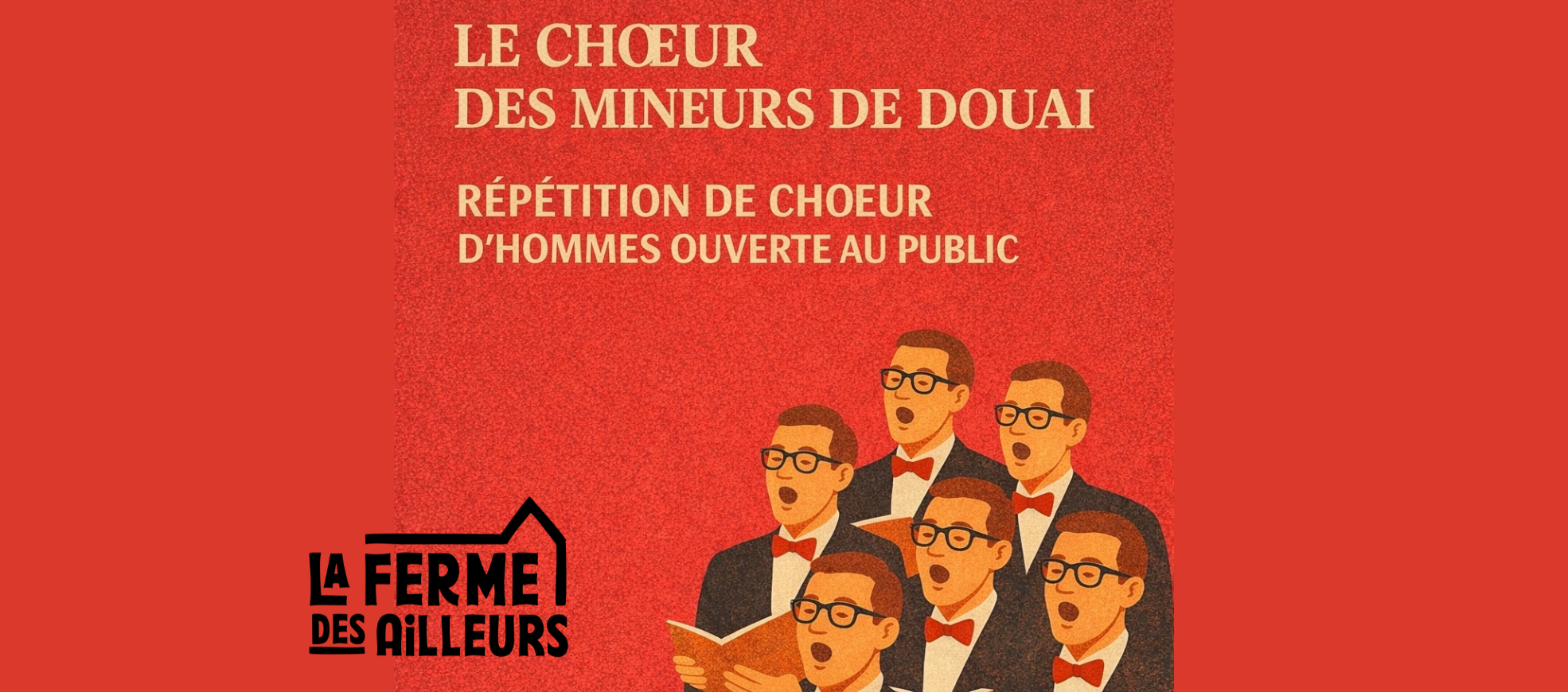 Le Chœur des Mineurs de Douai vous invite à une répétition exceptionnelle ouverte au public à la Ferme des Ailleurs. Venez vivre un moment musical unique et convivial en immersion totale avec nos choristes. INSCRIPTIONS : https://forms.gle/BGefwNww6fjR7LKj6 Une pause est prévue durant la répétition pour échanger avec le chœur. Venez nombreux partager notre passion !